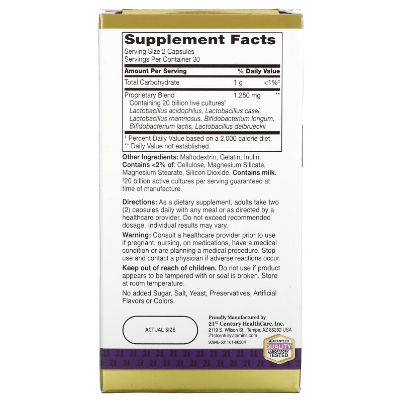 21st Century Health Care Дополнительные Пробиотики Ультра Потенции 60 Капсул – отзывы, купить с доставкой по Москве и России по цене выгоднее, чем в аптеке | интернет-магазин chelyabinsk.fakeoff.ru