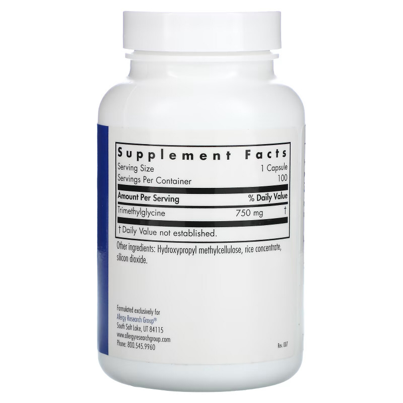 Купить Allergy Research Group, Триметилглицин ТМГ, 100 растительных капсул – цена 5530 ₽, заказать с доставкой в Челябинск | Интернет-магазин chelyabinsk.fakeoff.ru