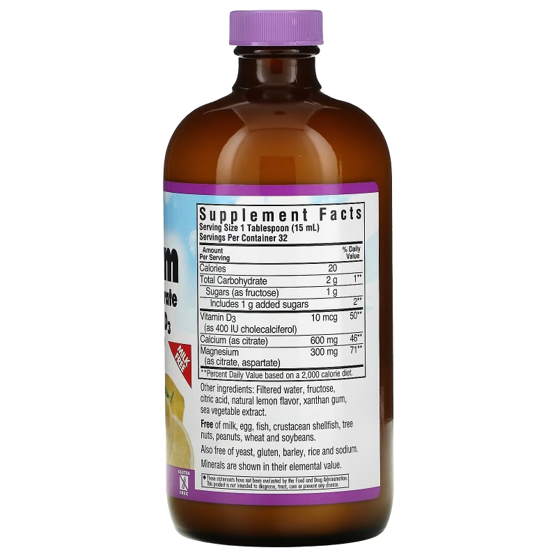 Bluebonnet Nutrition, Liquid Calcium, Magnesium Citrate Plus Vitamin D3, Natural Lemon, 16 fl oz (472 ml)