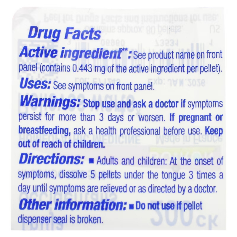 Uses: See symptoms on front of panel.