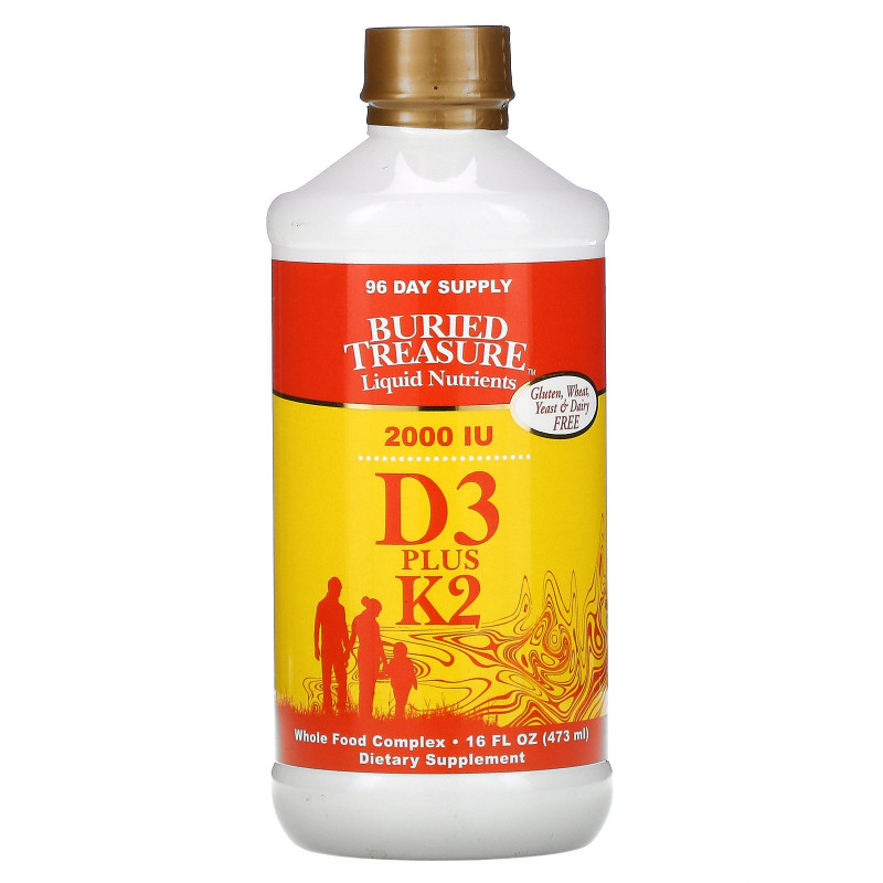 Купить Buried Treasure, Жидкий витамин D3, с K2, 16 жидких унций (473 мл) – цена 4580 ₽, заказать с доставкой в Челябинск | Интернет-магазин chelyabinsk.fakeoff.ru