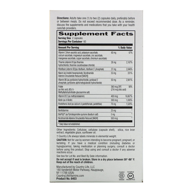 Купить Country Life, Коферментный комплекс витаминов группы B, улучшенная формула, 120 растительных капсул – цена 8350 ₽, заказать с доставкой в Челябинск | Интернет-магазин chelyabinsk.fakeoff.ru