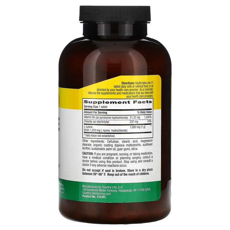 Купить Country Life, L-лизин, 1000 мг, 250 таблеток – цена 5560 ₽, заказать с доставкой в Челябинск | Интернет-магазин chelyabinsk.fakeoff.ru