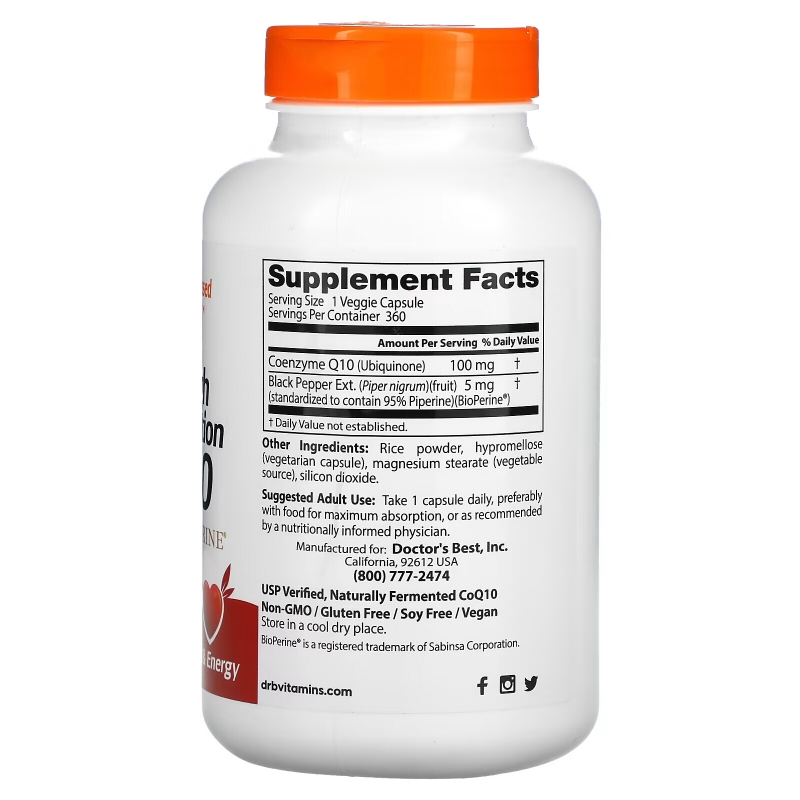 Купить Doctor's Best, Hi Поглощение Коэнзима Q10, 100мг, 360 Вегетарианских Капсул – цена 8520 ₽, заказать с доставкой в Челябинск | Интернет-магазин chelyabinsk.fakeoff.ru