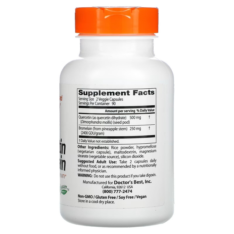 Doctor's Best, Кверцетин и Бромелаин, 180 капсул