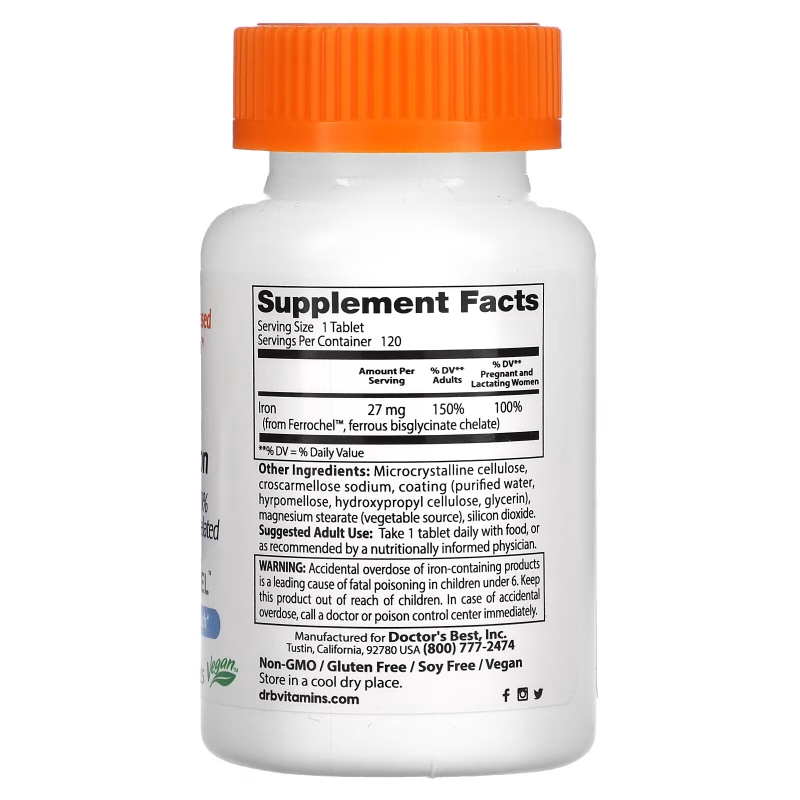 Купить Doctor's Best, Высокая усваиваемость с Ferrochel, 27 мг, 120 таблеток – цена 2060 ₽, заказать с доставкой в Челябинск | Интернет-магазин chelyabinsk.fakeoff.ru