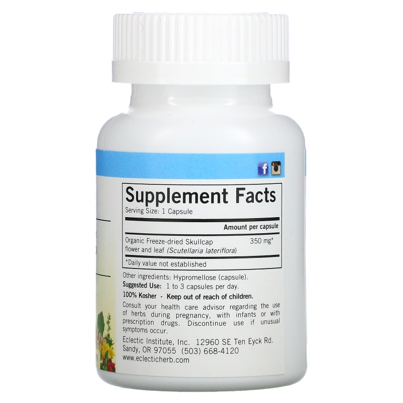 Способ приема, инструкция применения добавки Eclectic Institute, Шлемник широколистный, 350 мг, 90 растительных капсул без ГМО