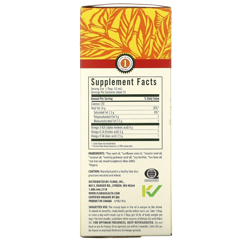 Flora, Выбор Удо, Смесь масел Удо 3 • 6 • 9, 17 жидких унций (500 мл)