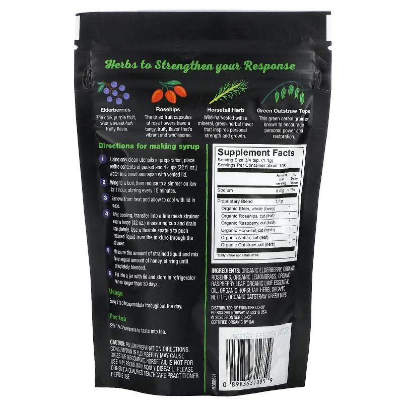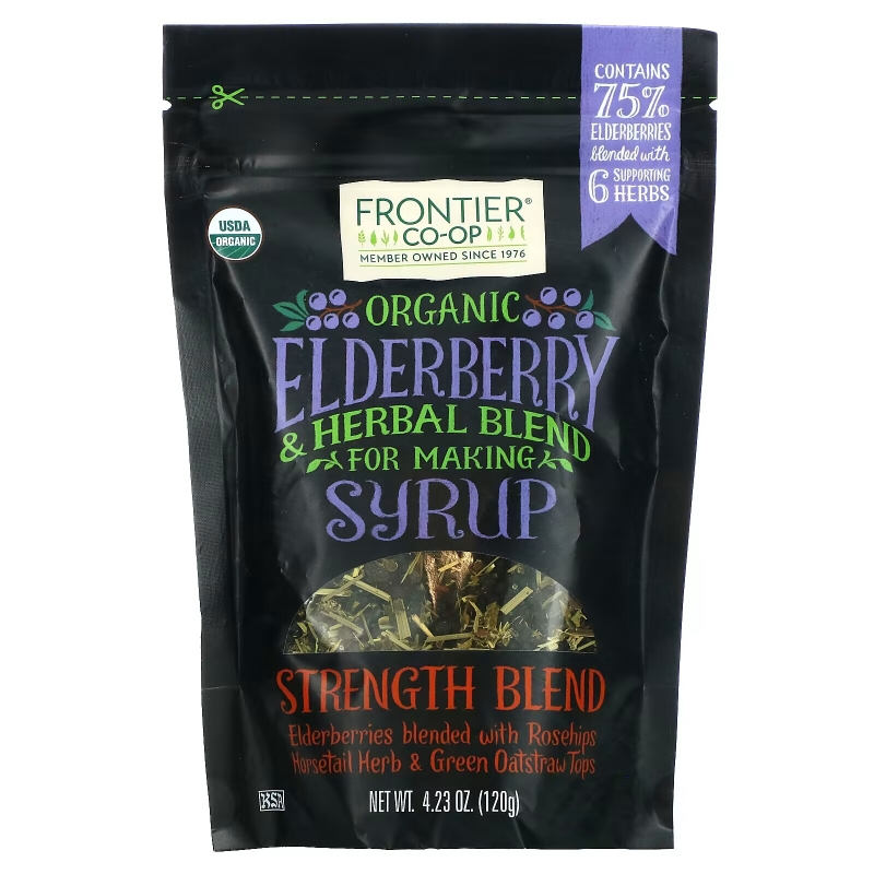 Frontier Co-op, Organic Elderberry & Herbal Blend For Making Syrup, Strength Blend, 4.23 oz (120 g)
