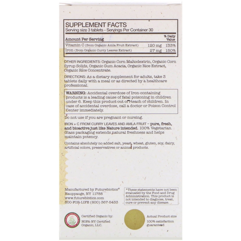 FutureBiotics, Сертифицированное Органическое Железо + Витамин C, 90 Растительных Органических таблеток