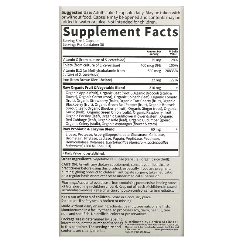 Купить Garden of Life, Витаминный комплекс с железом, 30 капсул в растительной оболочке – цена 3070 ₽, заказать с доставкой в Челябинск | Интернет-магазин chelyabinsk.fakeoff.ru