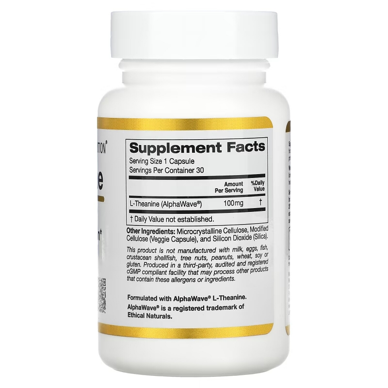California Gold Nutrition, L-теанин, AlphaWave, способствует расслаблению, успокоению и концентрации, 100 мг, 30 вегетарианских капсул – отзывы, купить с доставкой по Москве и России по цене выгоднее, чем в аптеке | интернет-магазин chelyabinsk.fakeoff.ru