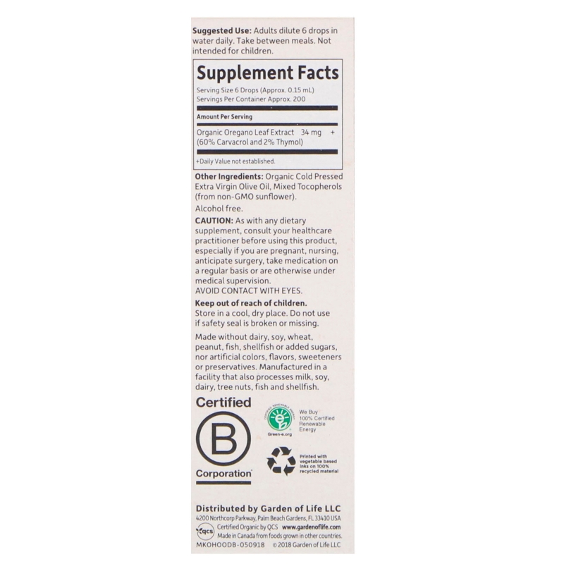 Garden of Life, MyKind Organics, Oil of Oregano Seasonal Drops, 1 fl oz (30 mL)