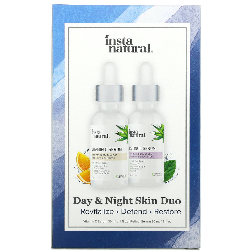 Купить InstaNatural, Набор из дневного и ночного средства для лица, антивозрастная сыворотка, 2 флакона, 1 унц. (30 мл) в каждом – цена 5210 ₽, заказать с доставкой в Челябинск | Интернет-магазин chelyabinsk.fakeoff.ru