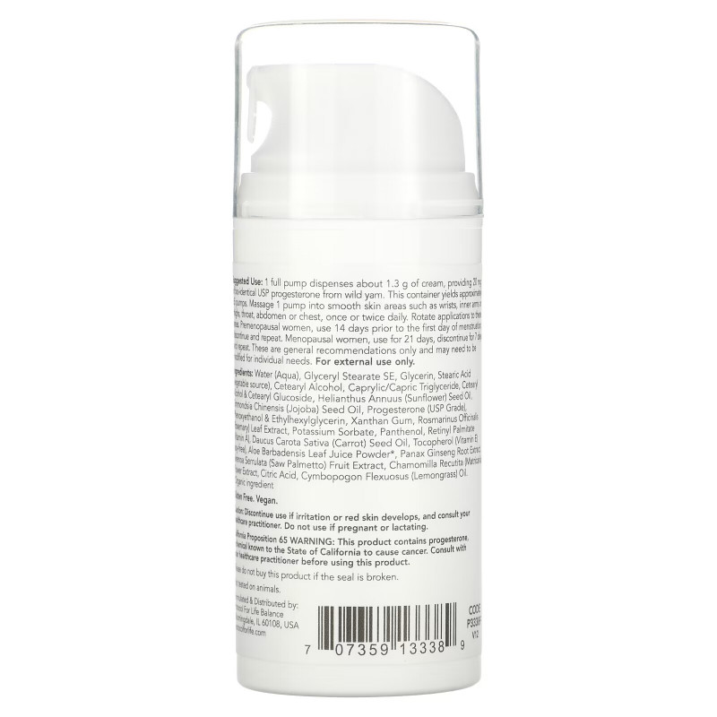 Protocol for Life Balance, Натуральный прогестерон, липосомный крем для кожи, без запаха, 3 унц. (85 г)