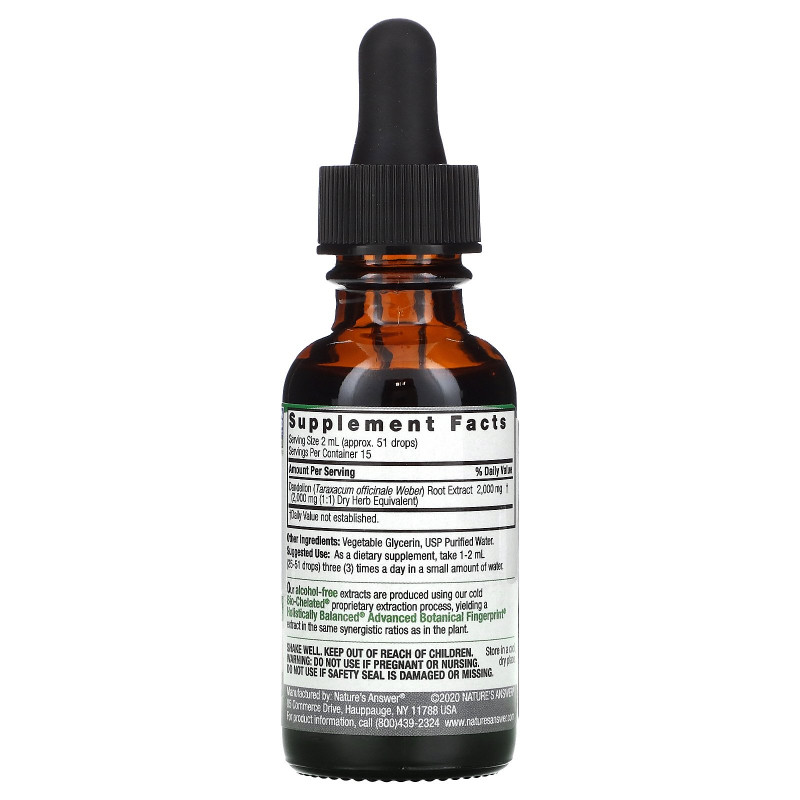 Nature's Answer, Одуванчик, без спирта, 2000 мг, 1 жидкая унция (30 мл)