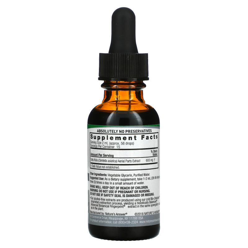 Nature's Answer, Трава готу-кола, без спирта, 30 мл