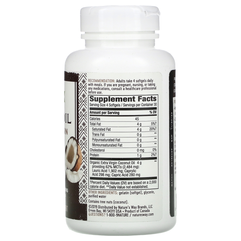 Nature's Way, Чистое кокосовое масло холодного отжима, 1000 мг, 120 гелевых капсул