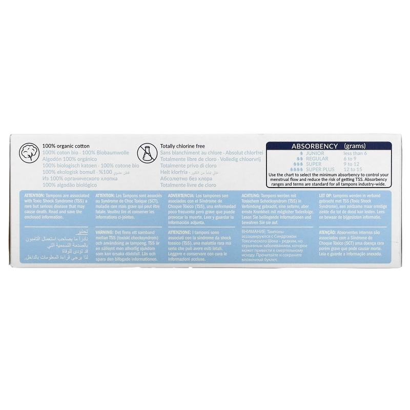 Внимание: Тампоны связывают с синдромом токсического шока (TSS) - редким, но серьезным заболеванием, которое может привести к смерти. Ознакомьтесь и сохраните прилагаемую информацию.