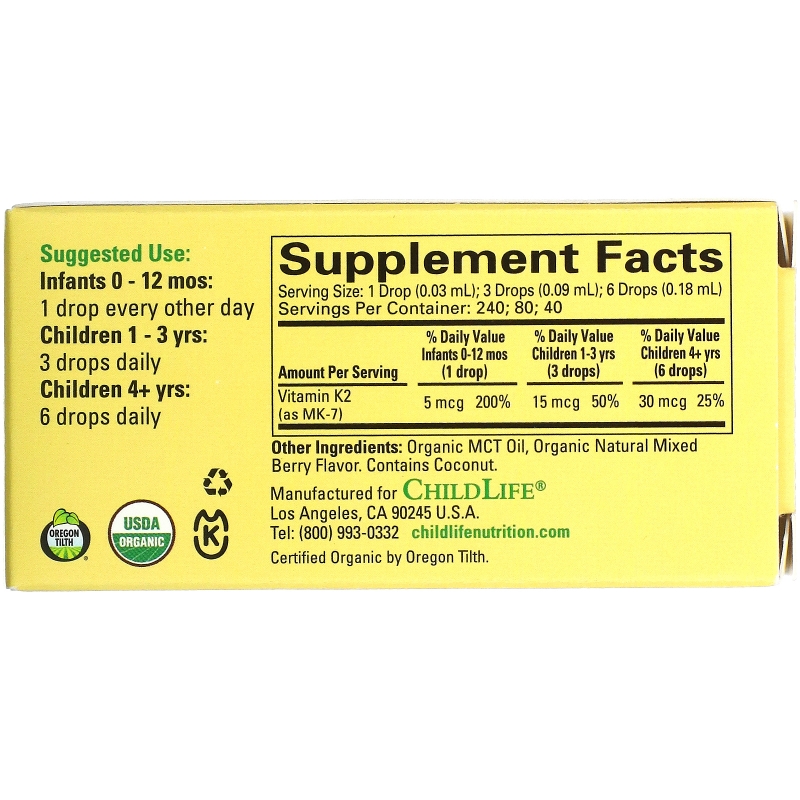 Витамин К2 ChildLife является сертифицированным органическим с содержанием натуральных ингредиентов и великолепным вкусом натуральных ягод. Органический витамин К2, формула которого была разработана врачами, предназначен для младенцев, маленьких детей и детей.