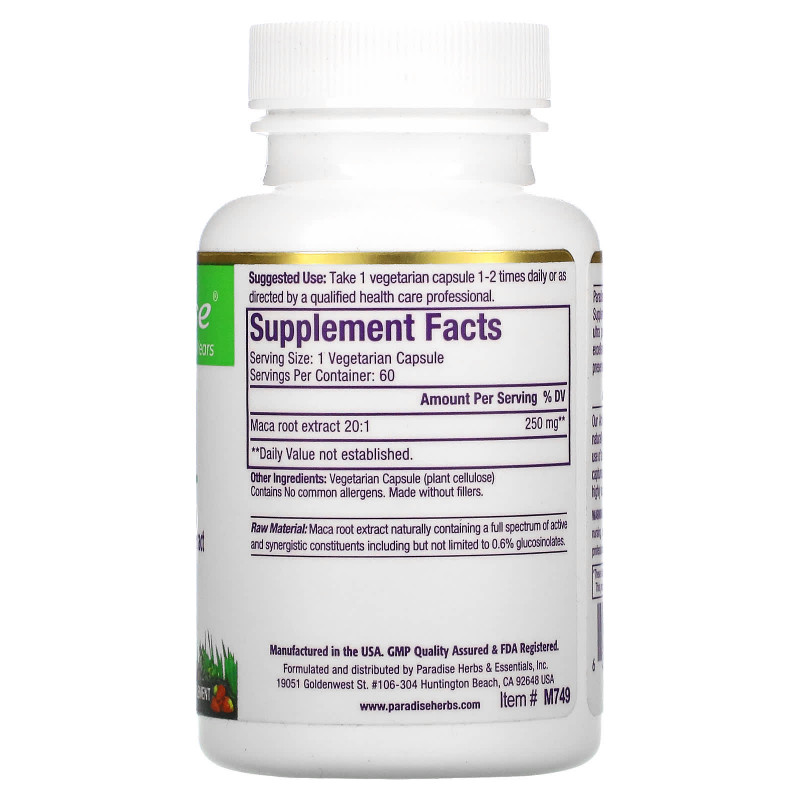 Paradise Herbs Перуанское золото мака 60 вегетарианских капсул