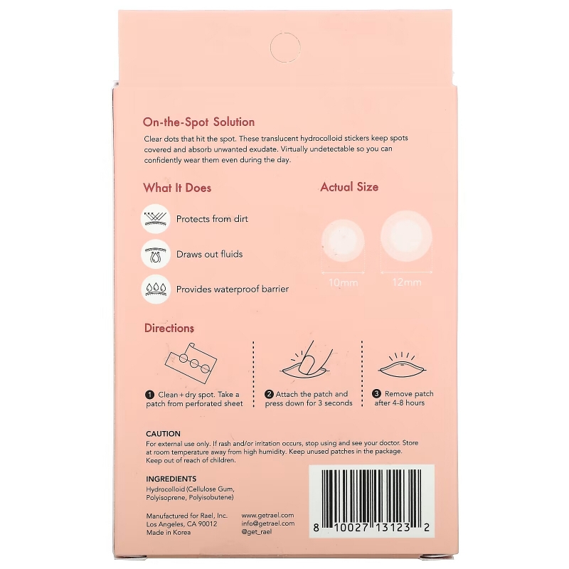 Способ приема, инструкция применения добавки Rael, Inc., Miracle Patch, Invisible Spot Cover, 48 Patches