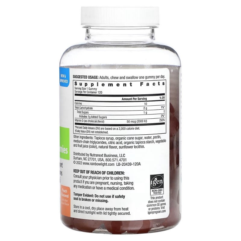 Купить Rainbow Light, Высокоэффективный витамин D3, персик, 2000 МЕ, 120 жевательных таблеток – цена 4390 ₽, заказать с доставкой в Челябинск | Интернет-магазин chelyabinsk.fakeoff.ru