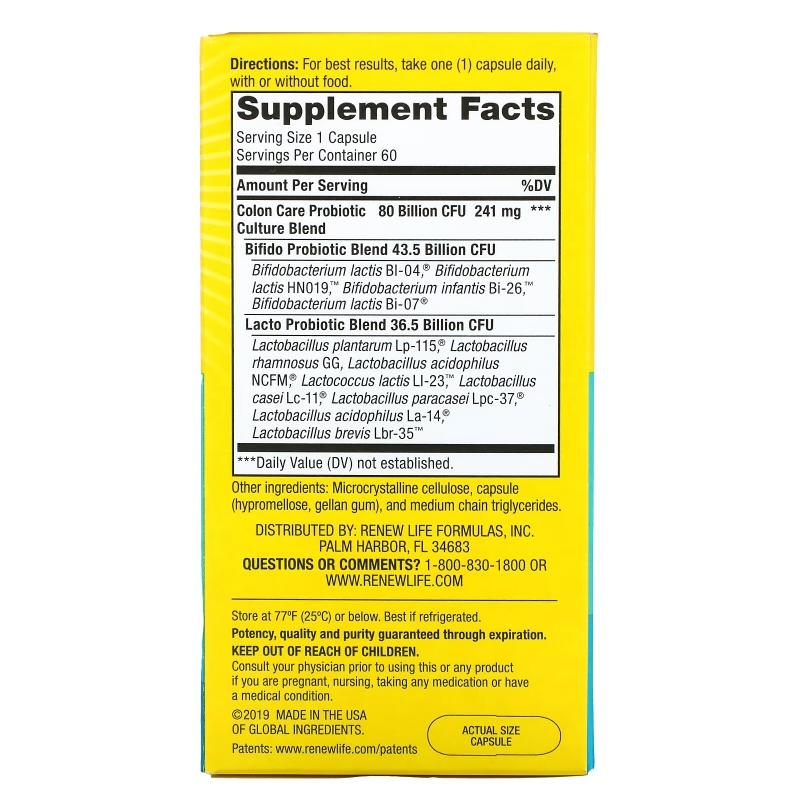 Купить Renew Life, Ultimate Flora Colon Care Probiotic, 80 млрд КОЕ, 60 вегетарианских капсул – цена 12290 ₽, заказать с доставкой в Челябинск | Интернет-магазин chelyabinsk.fakeoff.ru