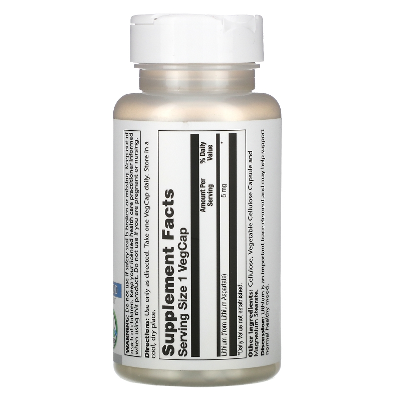 Купить Solaray, Лития аспартат, 5 мг, 100 капсул – цена 2770 ₽, заказать с доставкой в Челябинск | Интернет-магазин chelyabinsk.fakeoff.ru