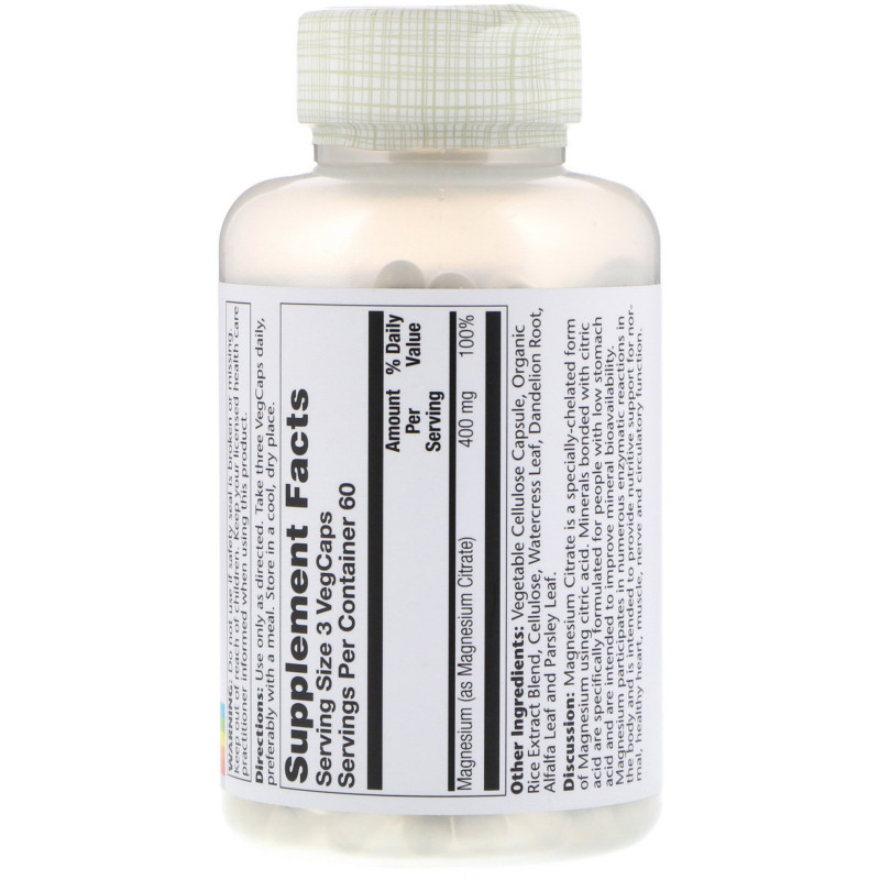 Solaray, Цитрат магния, 400 мг, 180 растительных капсул – отзывы, купить с доставкой по Москве и России по цене выгоднее, чем в аптеке | интернет-магазин chelyabinsk.fakeoff.ru