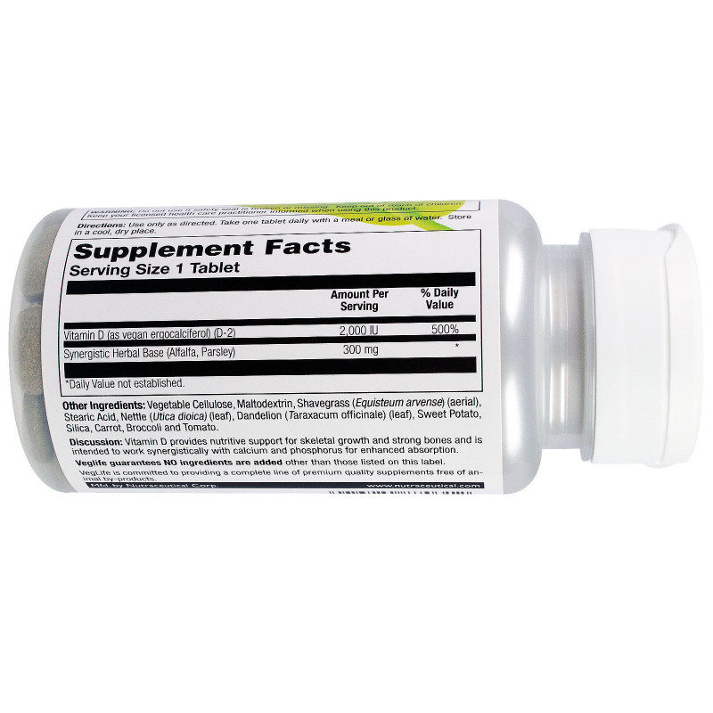 VegLife, Максимум витамина D растительного происхождения, 2000 МЕ, 100 таблеток