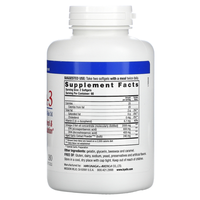 Купить Kyolic, Омега-3, натуральный рыбий жир без запаха, 180 капсул с омега-3 – цена 8290 ₽, заказать с доставкой в Челябинск | Интернет-магазин chelyabinsk.fakeoff.ru